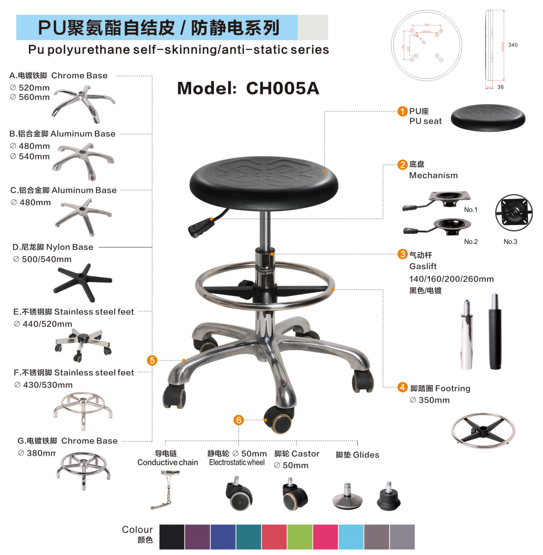 Customization Options: Color, caster type, foot ring, armrests