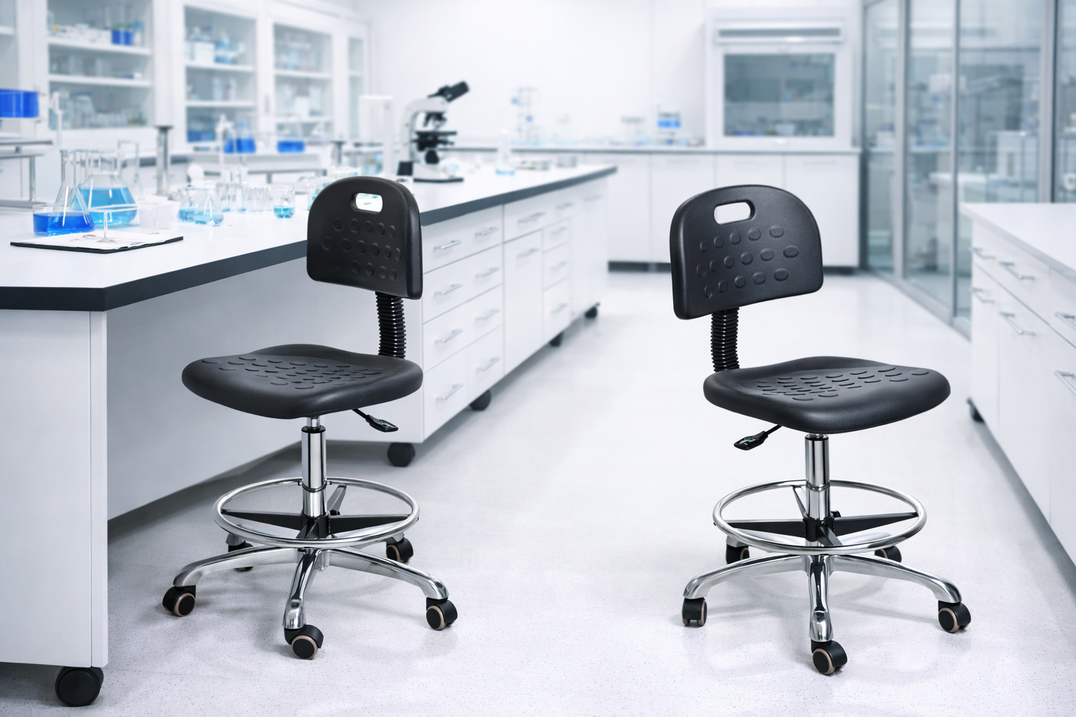 The industrial polyurethane with chrome foot ring and casters adjustable laboratory chair demonstrates how quality caster design supports both smooth movement and workstation safety. For labs requiring flexibility and control, the right casters make all the difference.